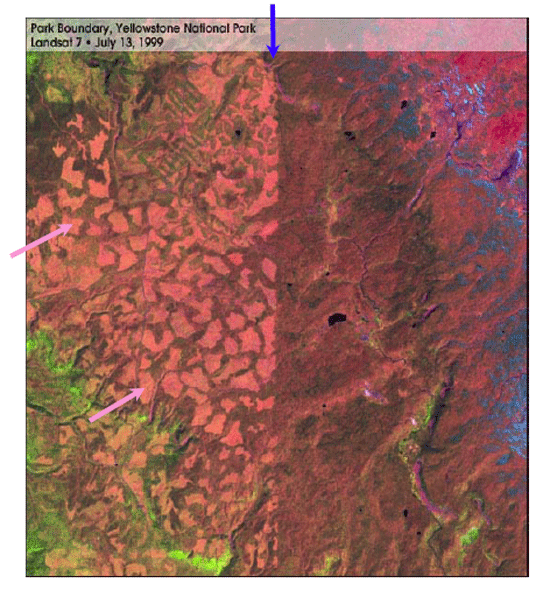 Now, think about Yellowstone. Originally, the boundaries drawn for the park separated wilderness inside from wilderness outside. Today, as shown in the satellite photo, some of the park boundaries are easy to see from space because loggers outside the park work right up to the boundaries. Yellowstone remains connected to other wilderness regions in other directions; it is not an island (yet).